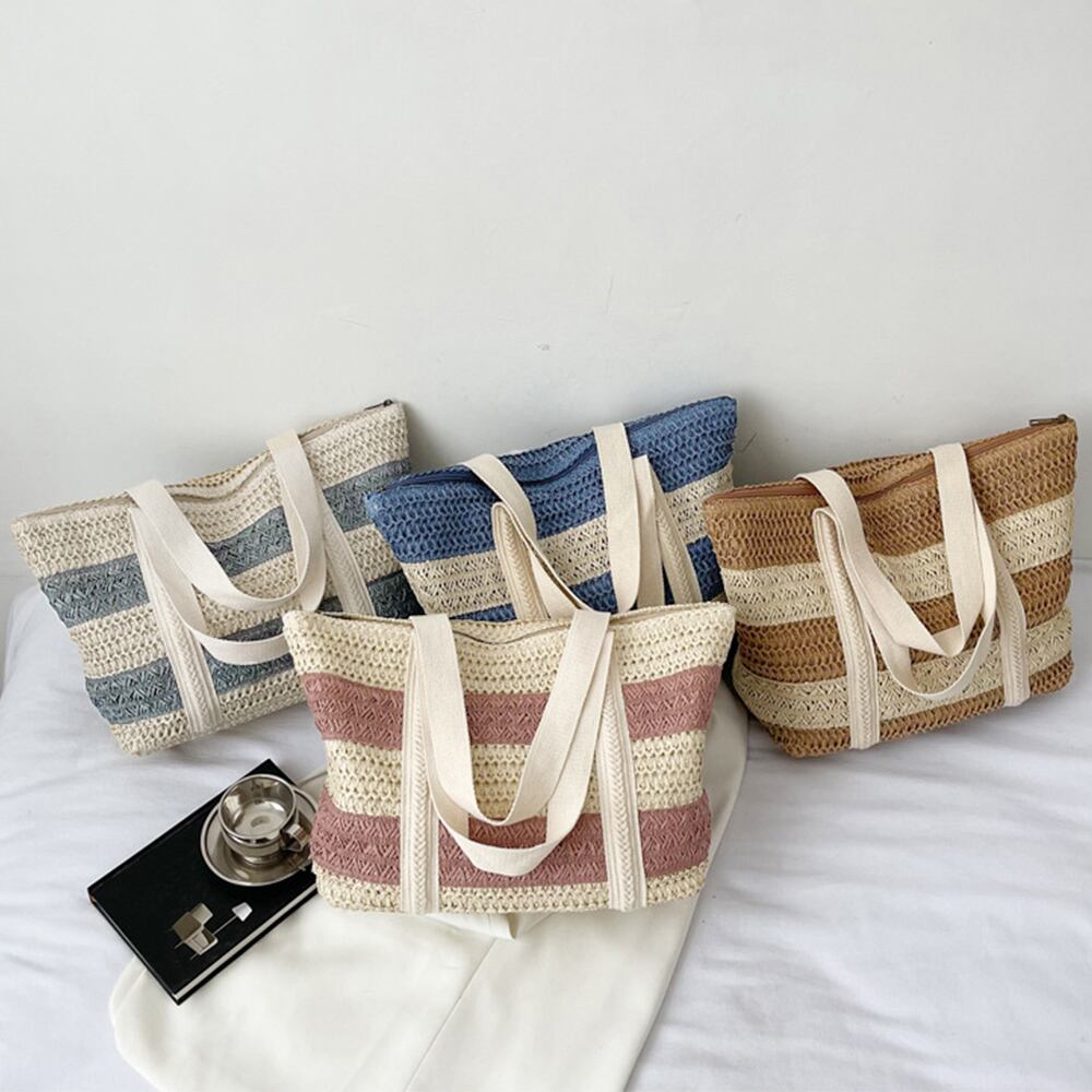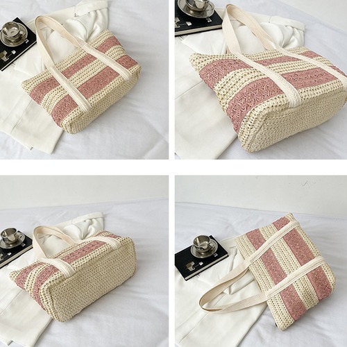 ペーパートート配色 バスケットトート海 カジュアル カバン