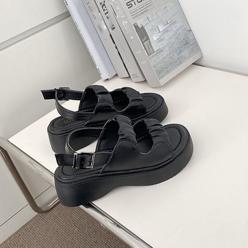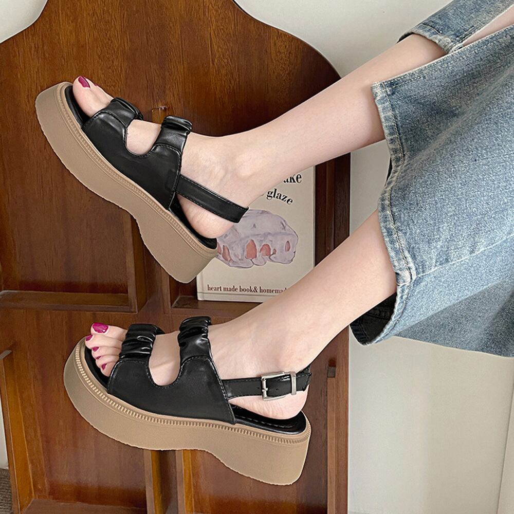 【日本倉庫即納】 厚底サンダル ダブルベルト 夏靴 韓国