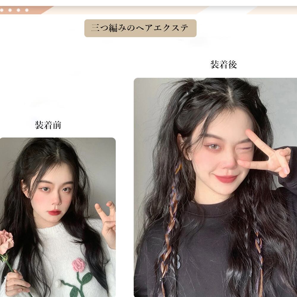 クリップ式で簡単に装着できるカラーバリエーション豊富な三つ編みのヘアエクステ