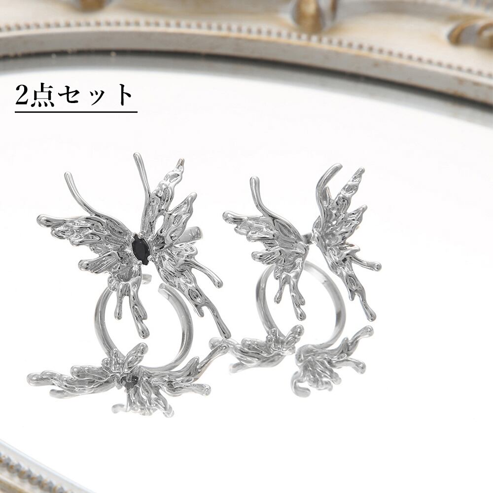 レディース 蝶々リング シルバー 2ピース 原宿風指輪 重ね付け アクセサリー プチプラ おしゃれ 大きめ 蝶々指輪個性