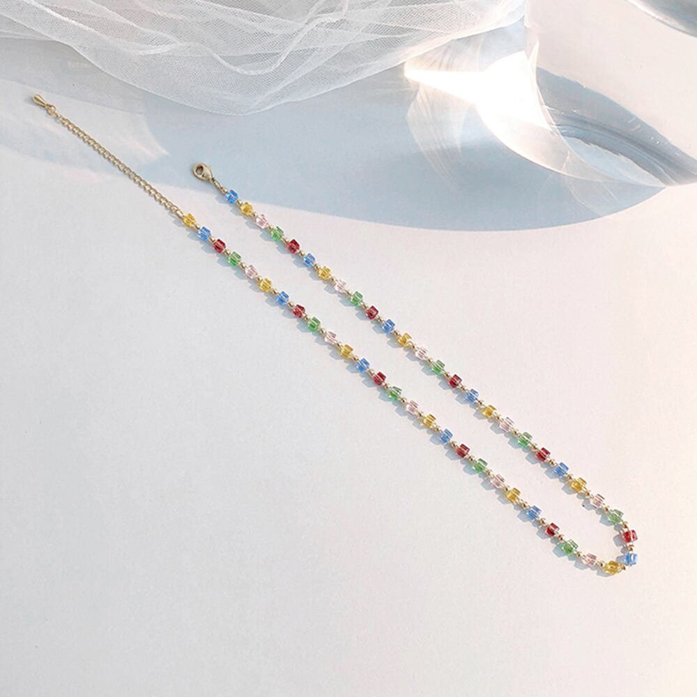 レディース おしゃれ アクセサリー カラフル ジュエリー キューブビーズ 可愛い 首飾り パーティー ネックレス 女子会
