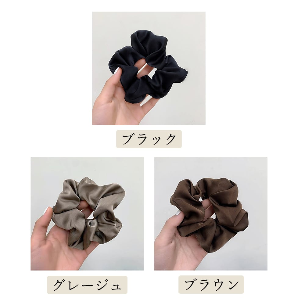 【日本倉庫即納】 サテンヘアゴム シュシュ 韓国 無地3色