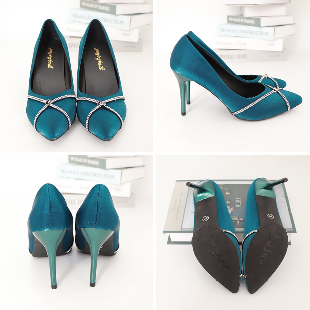 レディース ピンヒールパンプス ポインテッドトゥ 結婚式 フェミニン きれいめ パーティーシューズ お呼ばれ靴 上品