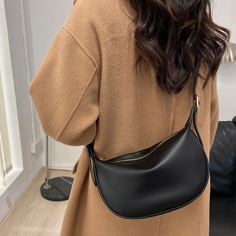 柔らかいPUレザーで仕上げた三日月型ミニショルダーバッグ