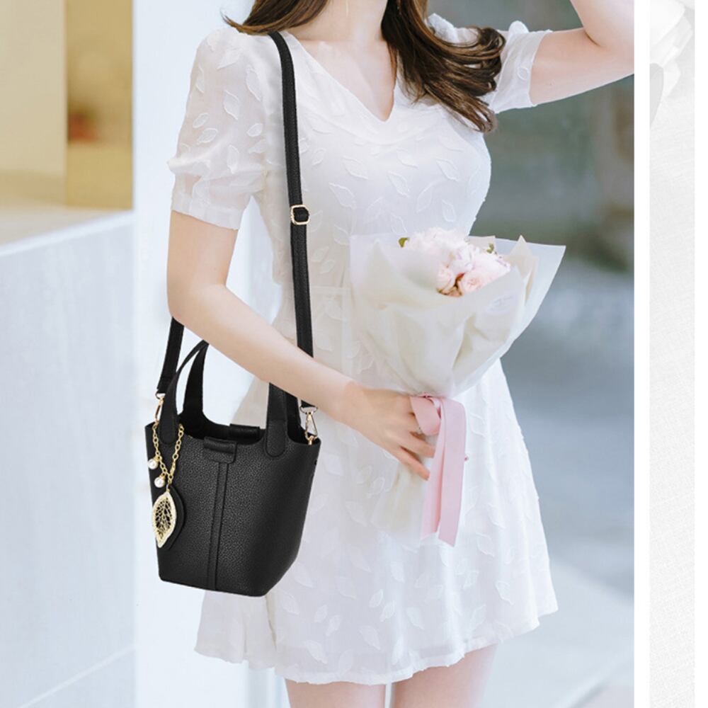 レディース PUレザー バケットバッグ 2way 手提げ鞄 オフィスカジュアル 肩掛けバッグポーチ付き ミニトートバッグ