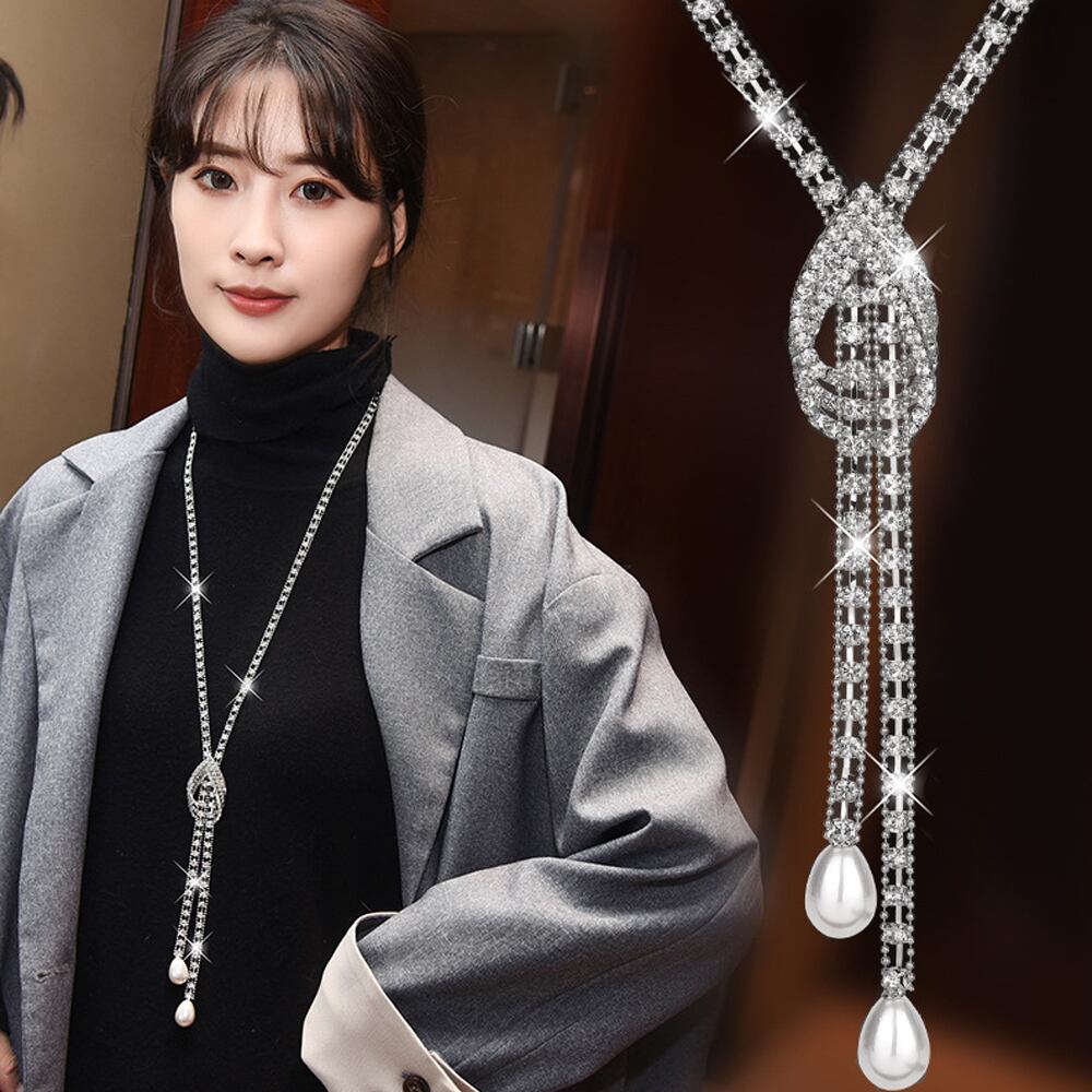 キラキラのラインストーンをぎっしり埋め込んだモチーフが目を引く、とてもエレガントなロングネックレス
