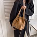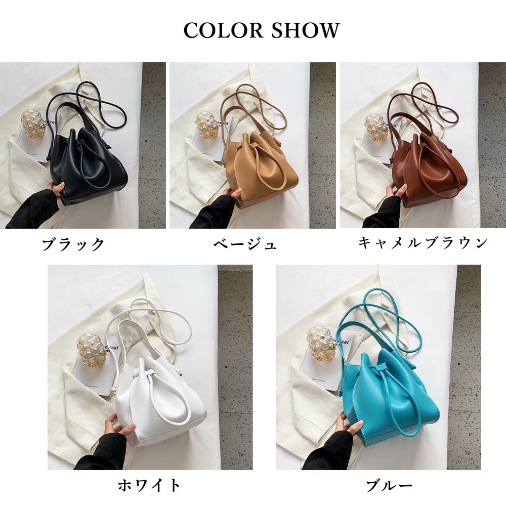 コロンとしたフォルムが愛らしいPUレザー巾着ショルダーバッグです