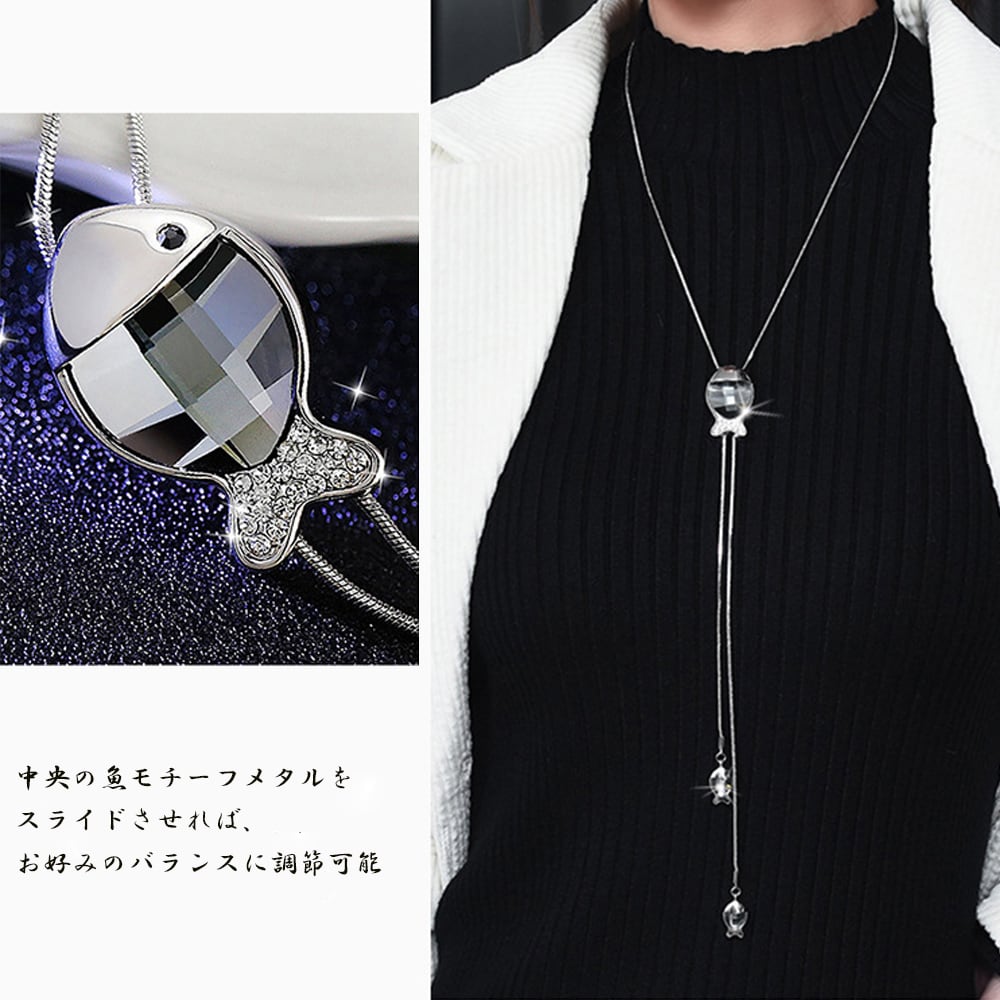 レディース 服飾り Y字 チェーンネックレス 魚モチーフ ネックレス 調節可能 大人アクセサリー 30代 40代 50代