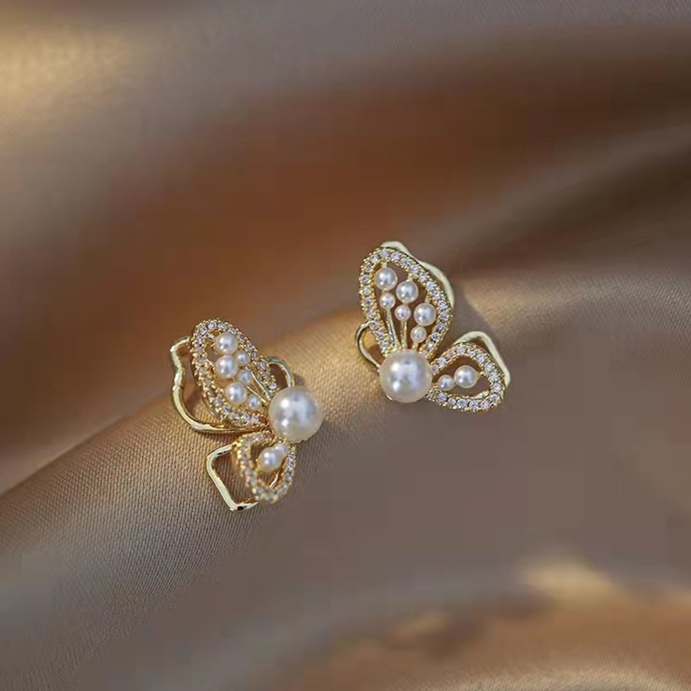 煌びやかなバタフライモチーフが耳元を華やかに演出するピアス