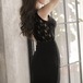 自信とセクシーさを兼ね備えた魅力的な背中レースチャイナドレス