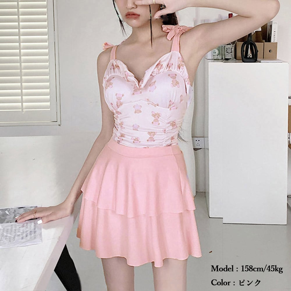 【日本倉庫即納】 可愛い ワンピース水着 2点セット