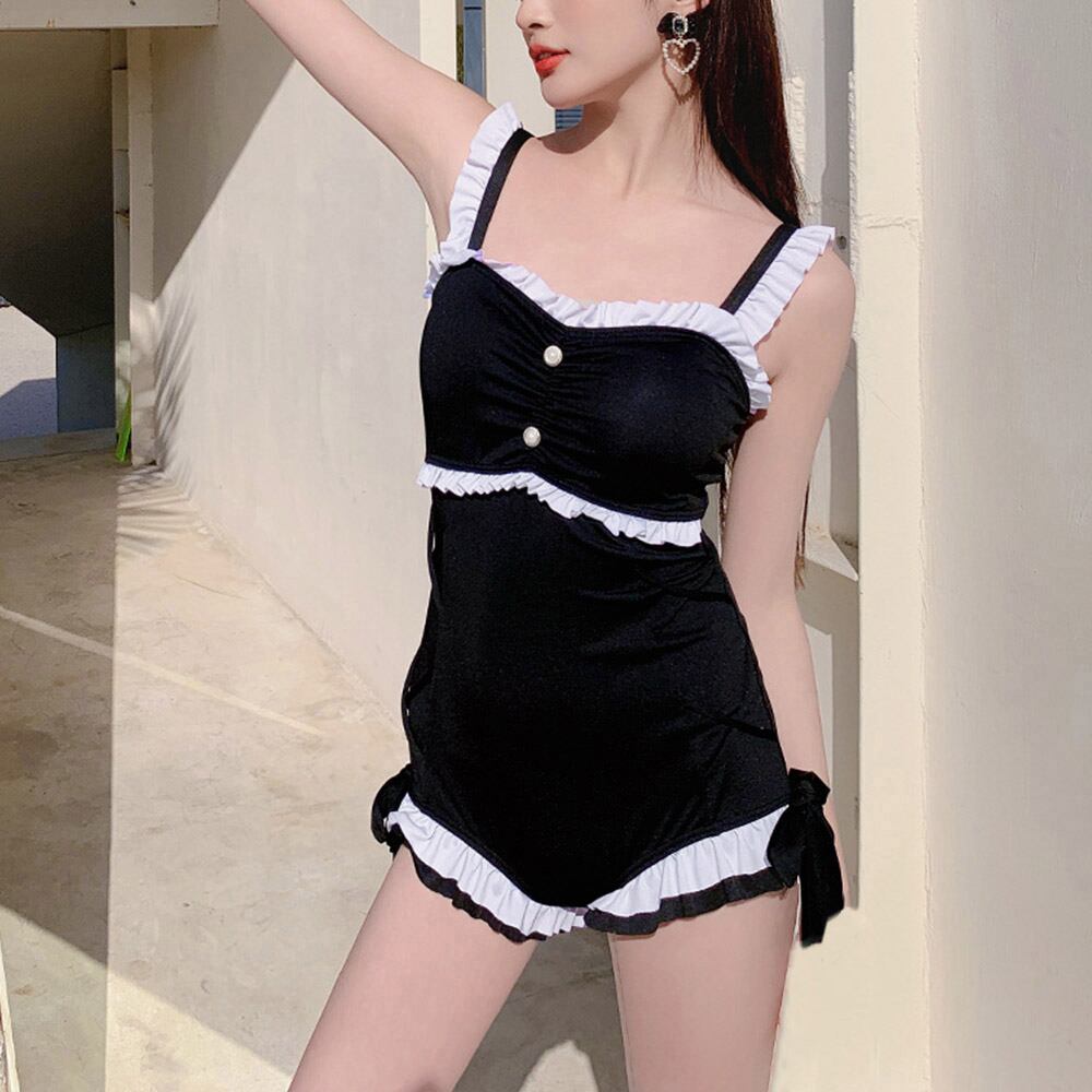 裾フリル ワンピース水着 オールインワン パッド付き スイムウェア ギャザー 韓国風 ビーチウェア バイカラー