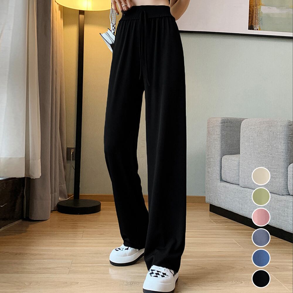 【日本倉庫即納】 セミワイドパンツ 冷感タッチロングパンツ