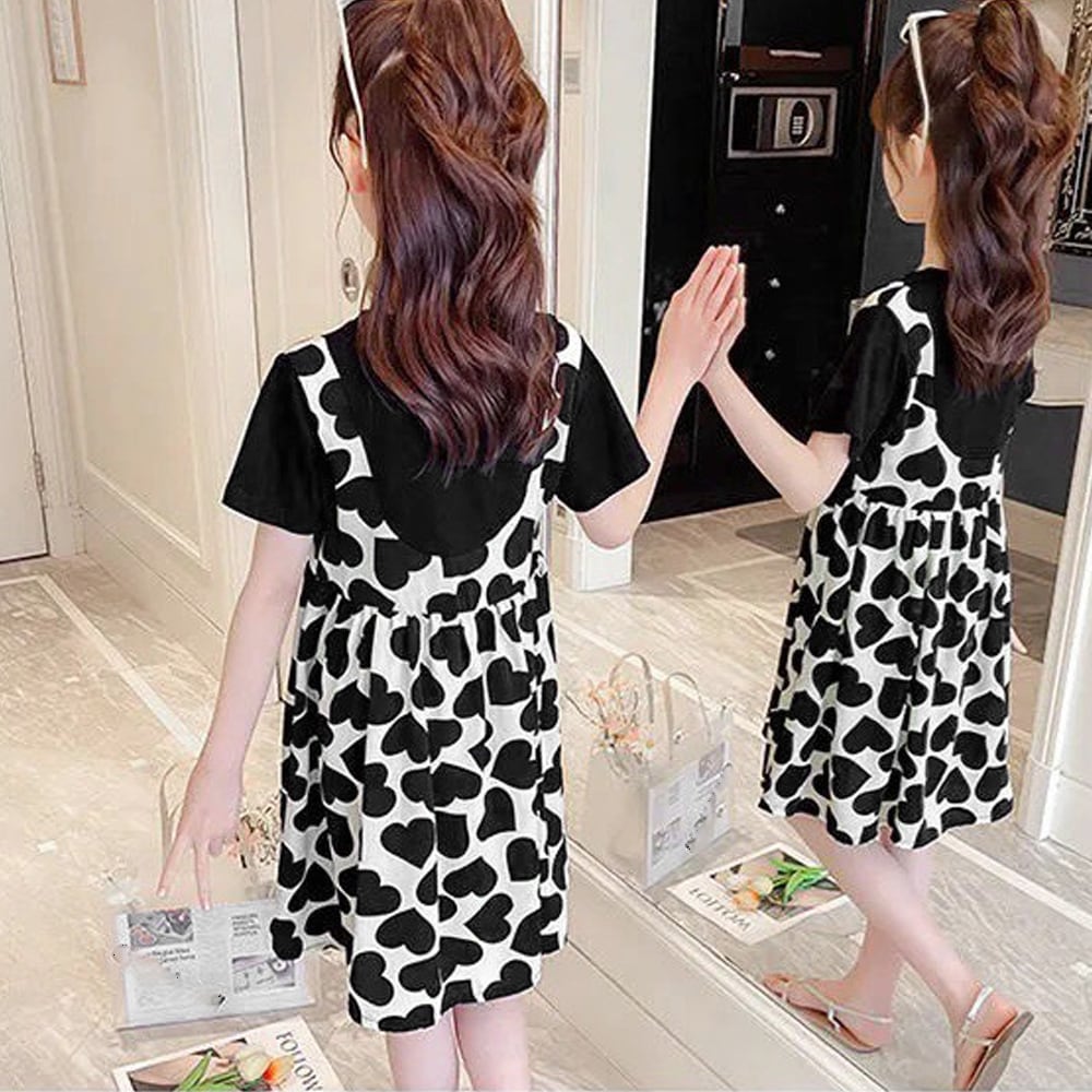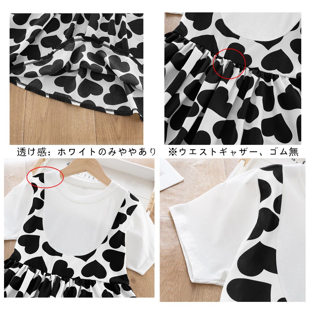 キッズ 半袖 可愛い ハート柄ワンピース 重ね着風 春夏 夏サマー ジュニア 子供服 ドレス