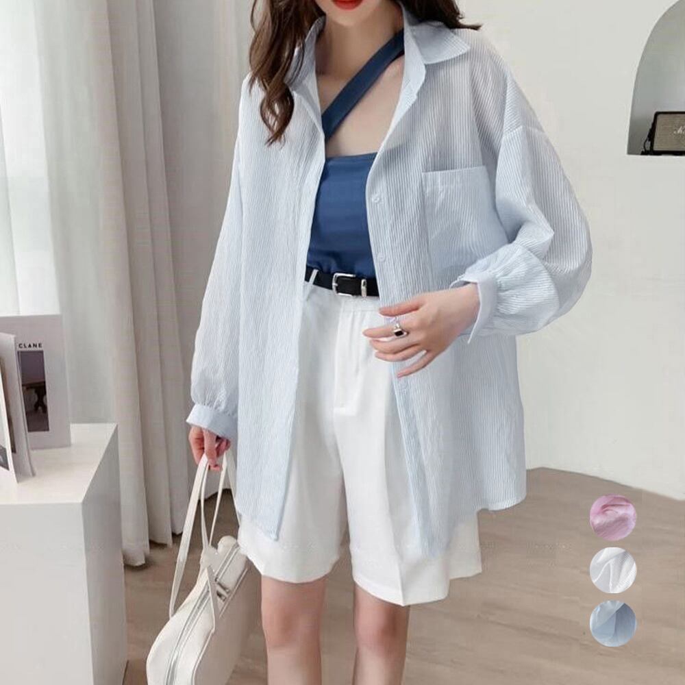 【日本倉庫即納】 ストライプ ブラウス シアーシャツ 夏服