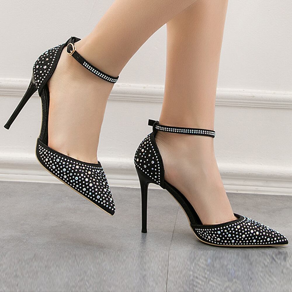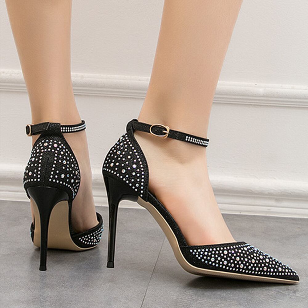 美脚度の高い10cmヒールで女性らしく、ラインストーンがラグジュアリーな輝きを放ってくれます