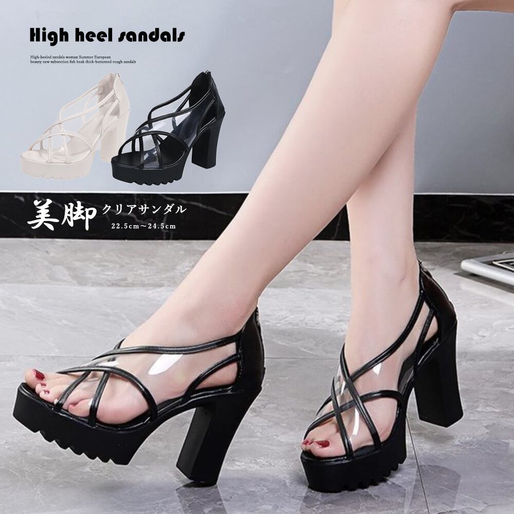 【日本倉庫即納】 ハイヒール クリアサンダル レディース夏