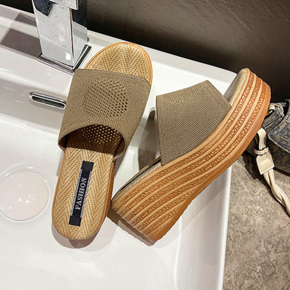 おしゃれ ジュート風 ウエッジソール サンダル 歩きやすい ボリュームソール スリッパ メッシュ 美脚カジュアルシューズ