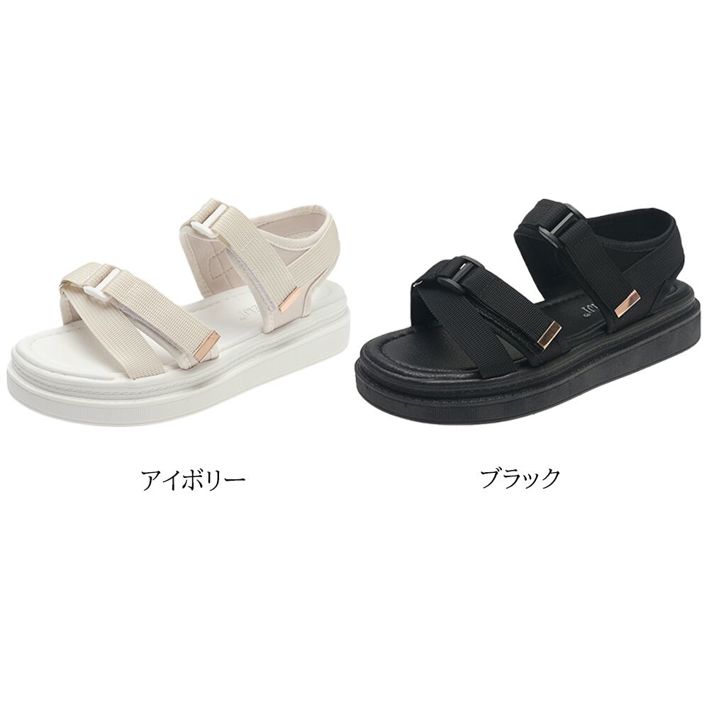 サマーサンダル マジックテープ フラット ボリューム コンフォート靴 履きやすい 韓国風 黒 アイボリー