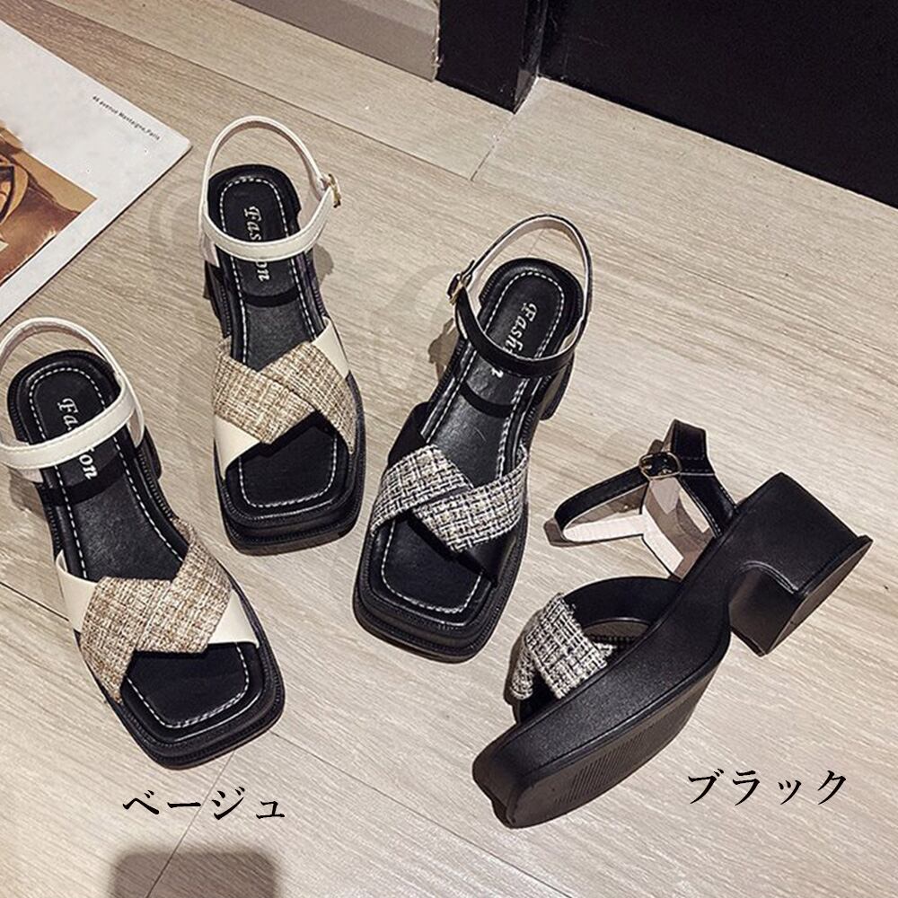 【日本倉庫即納】 厚底サンダル クロスストラップ 韓国春夏