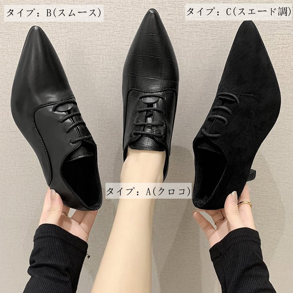 裏起毛 オックスフォードシューズ レディース ルイヒール ポインテッドトゥ ブーツ レースアップ 歩きやすい 靴 美脚