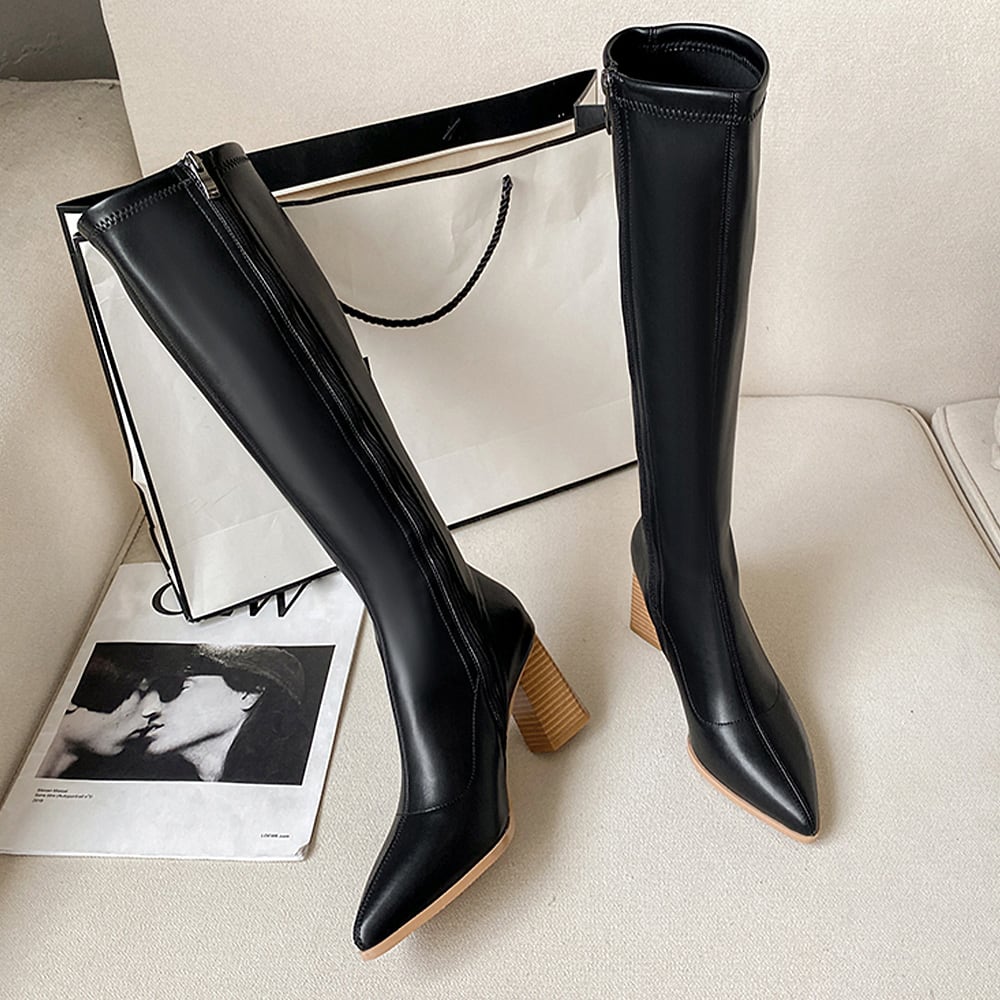 シューズ チャンキーヒール 内側ジッパー 秋冬 ロング丈 ファスナー付き 大人 カジュアル きれい 上品 人気