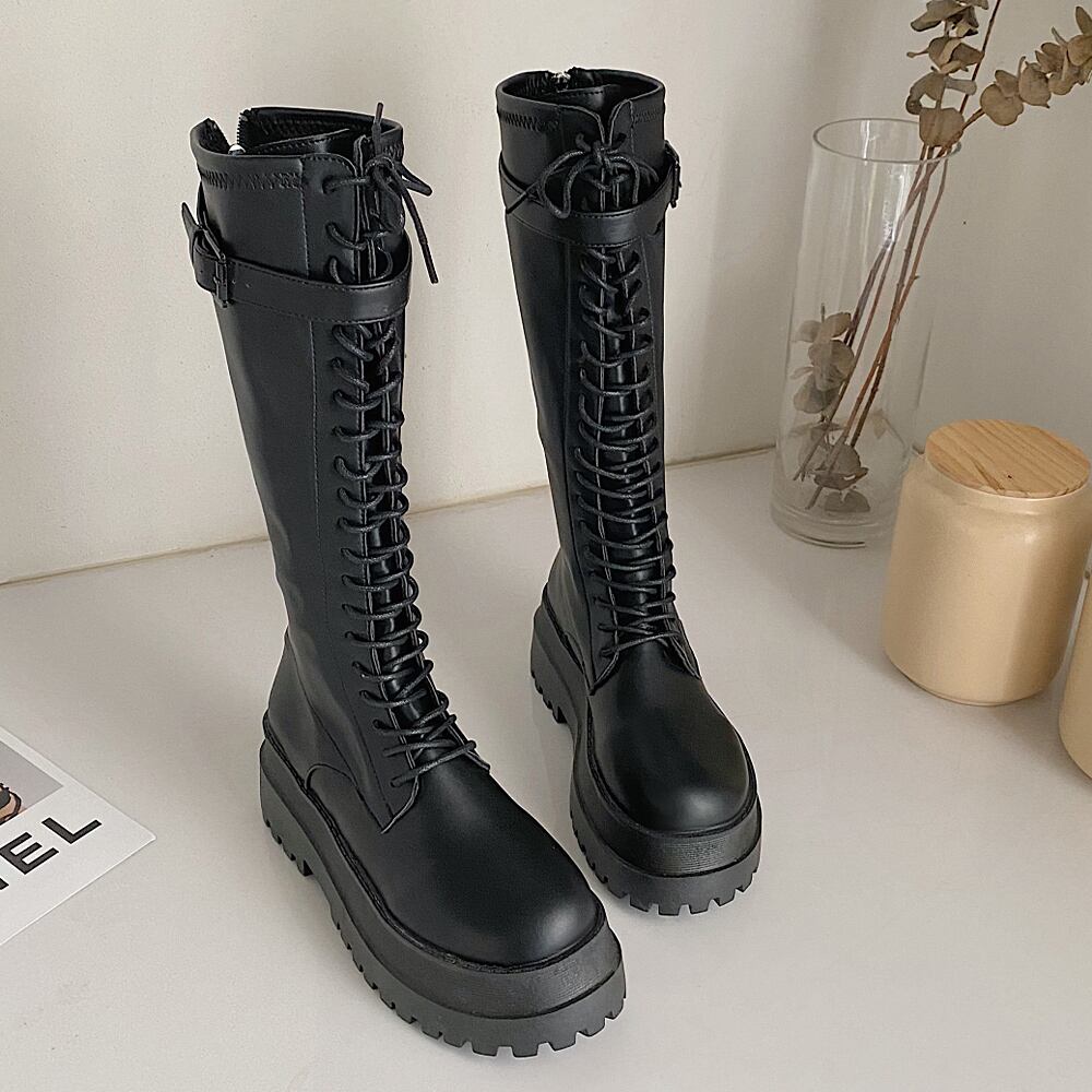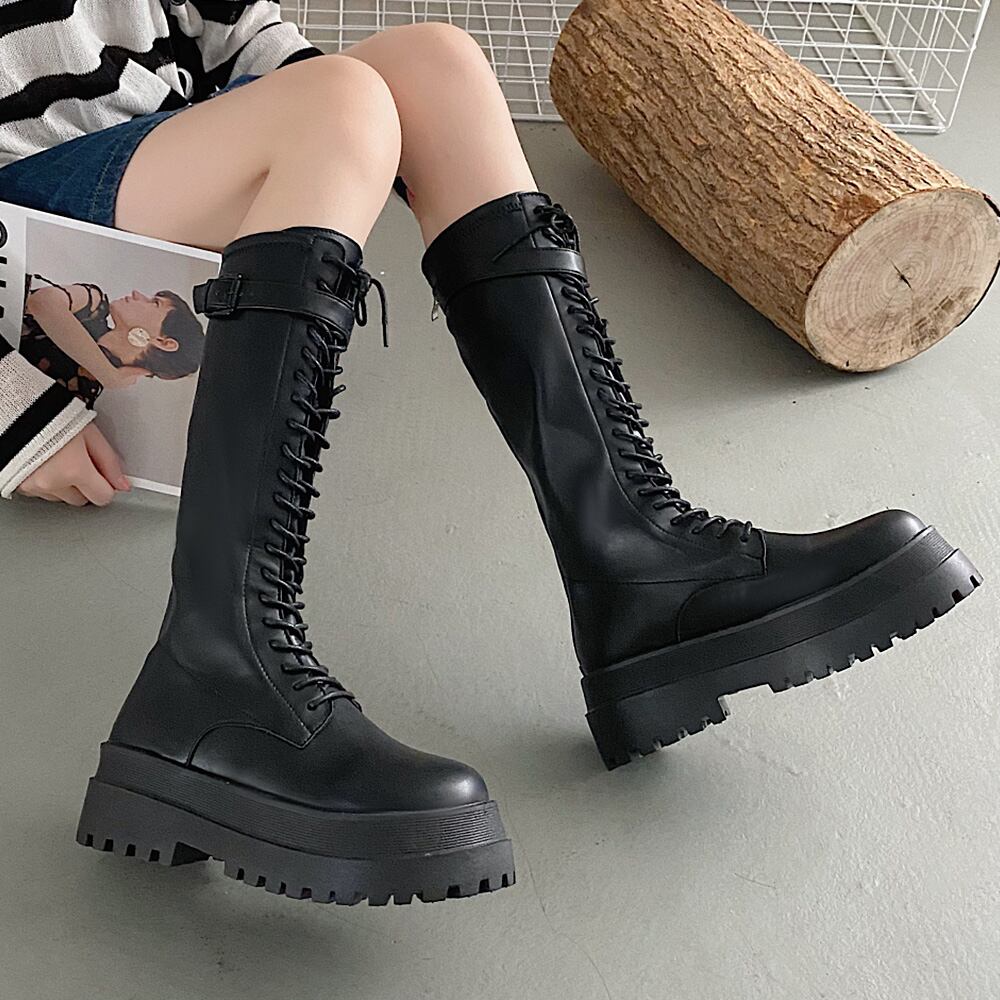 【日本倉庫即納】 レースアップ 厚底 ロングブーツ 韓国