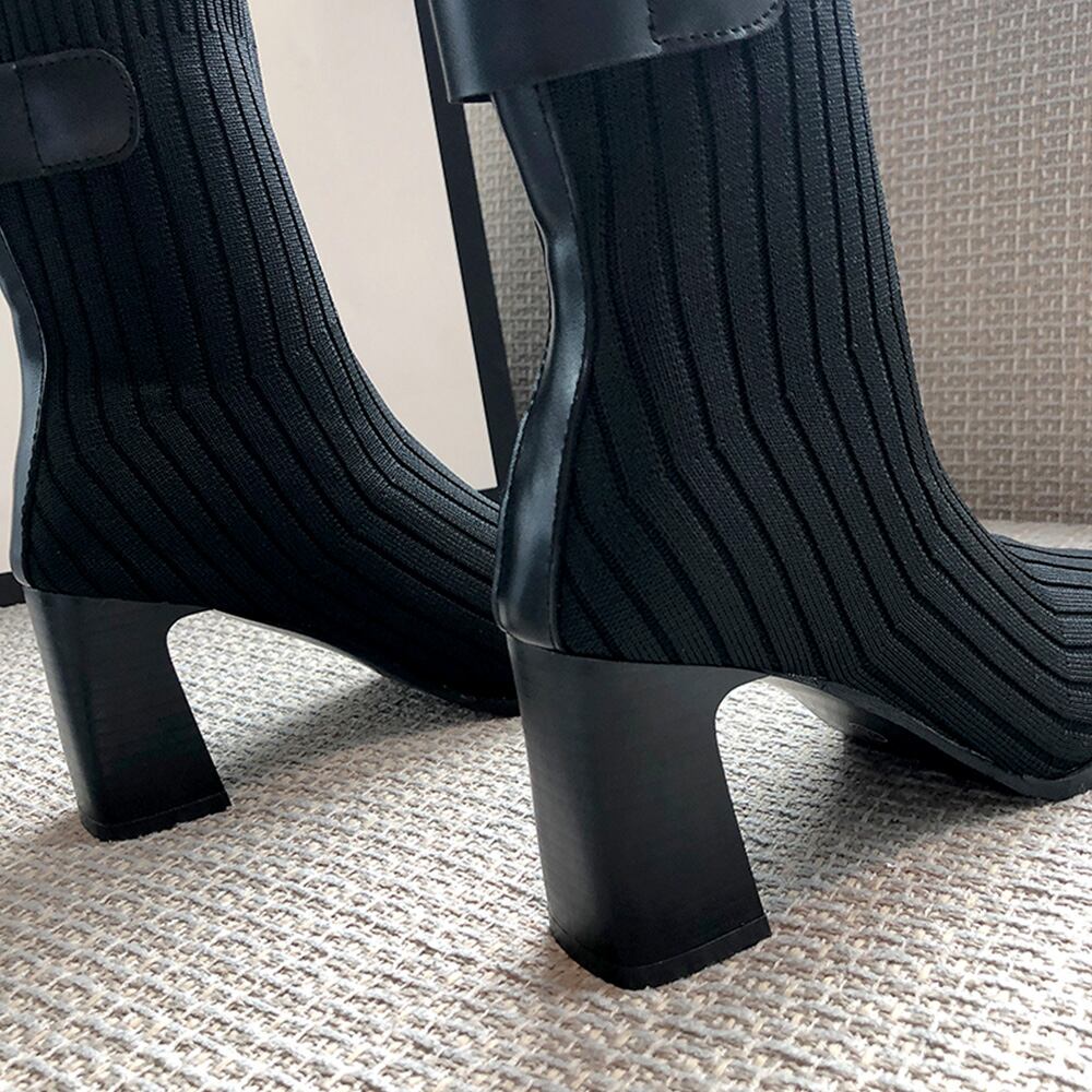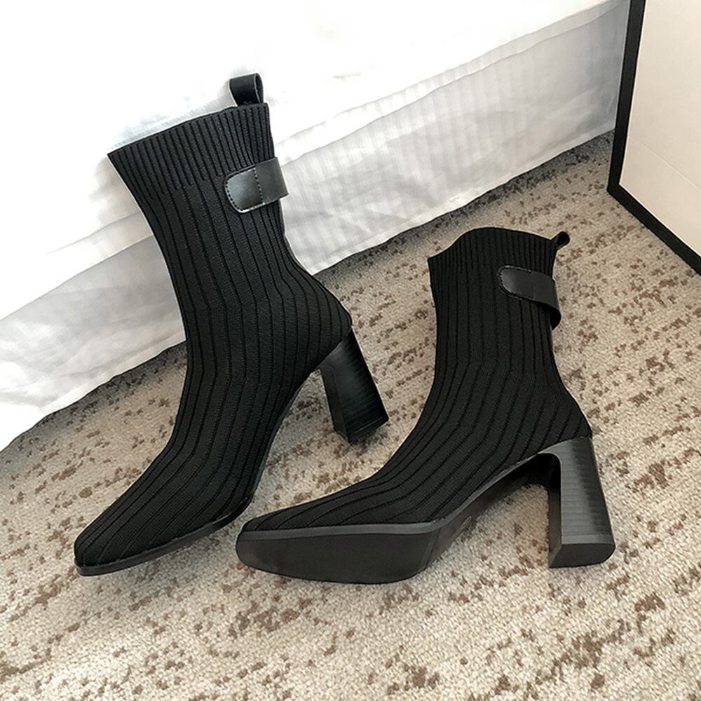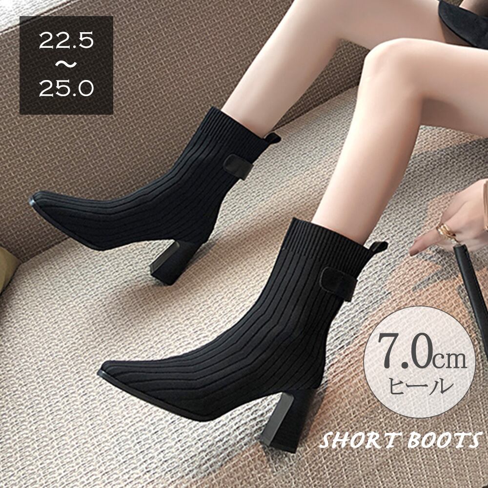 ソックスブーツ リブ 秋冬 ブラック ハイヒール ショート丈 ファッション靴 韓国 オルチャン