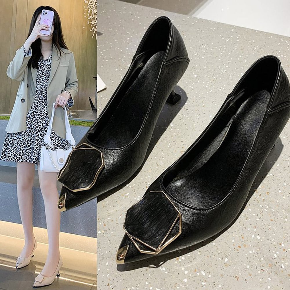【日本倉庫即納】 パンプス ポインテッドトゥ金属飾り 美脚