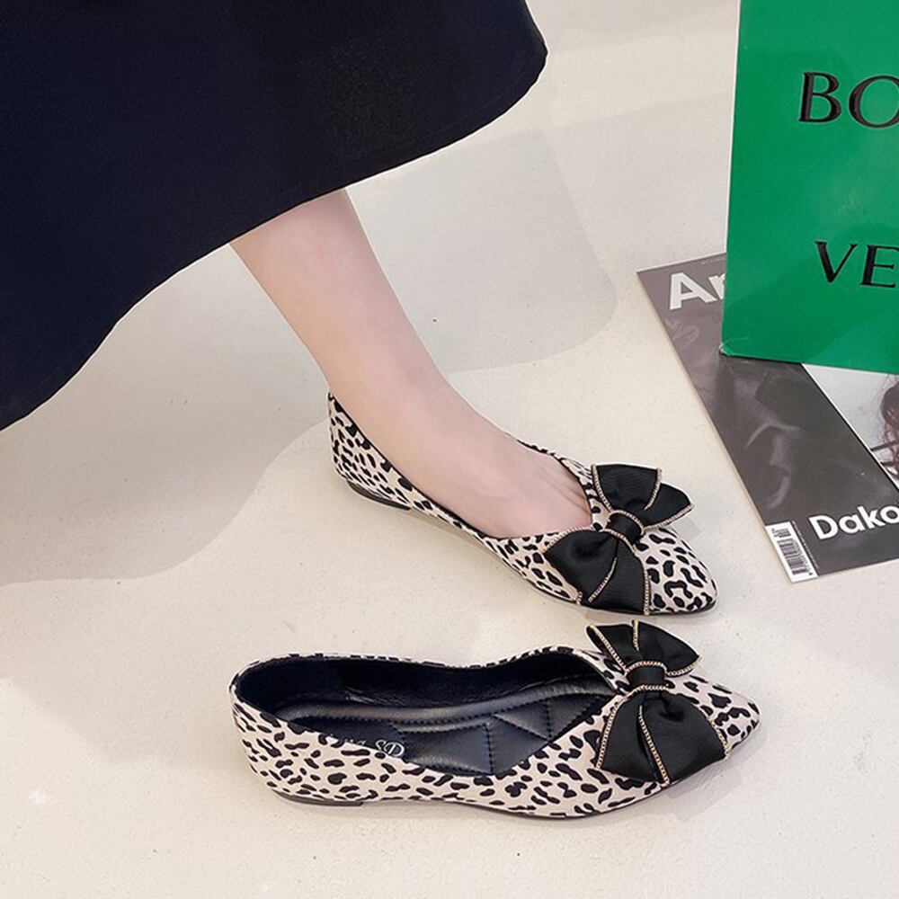 レディース おしゃれ フラットパンプス 春夏 ヒョウ柄 ぺたんこシューズ 蝶結び 歩きやすい 美脚 パンプス 通勤 靴