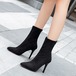秋冬シューズ ミドル ピンヒールショートブーツ バックジップ ストレッチブーツ ハイヒール ポインテッドトゥ黒靴 韓国風