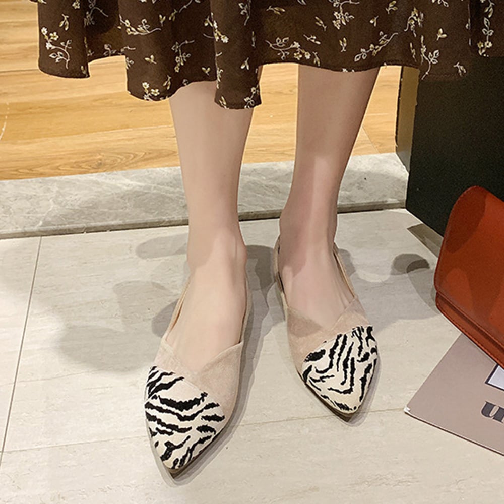 ポインテッドトゥ フラットシューズ 痛くない アニマル柄バレエシューズ パンプス 歩きやすい オフィス 春 韓国配色OL ゼブラ柄pumps カジュアルスエード