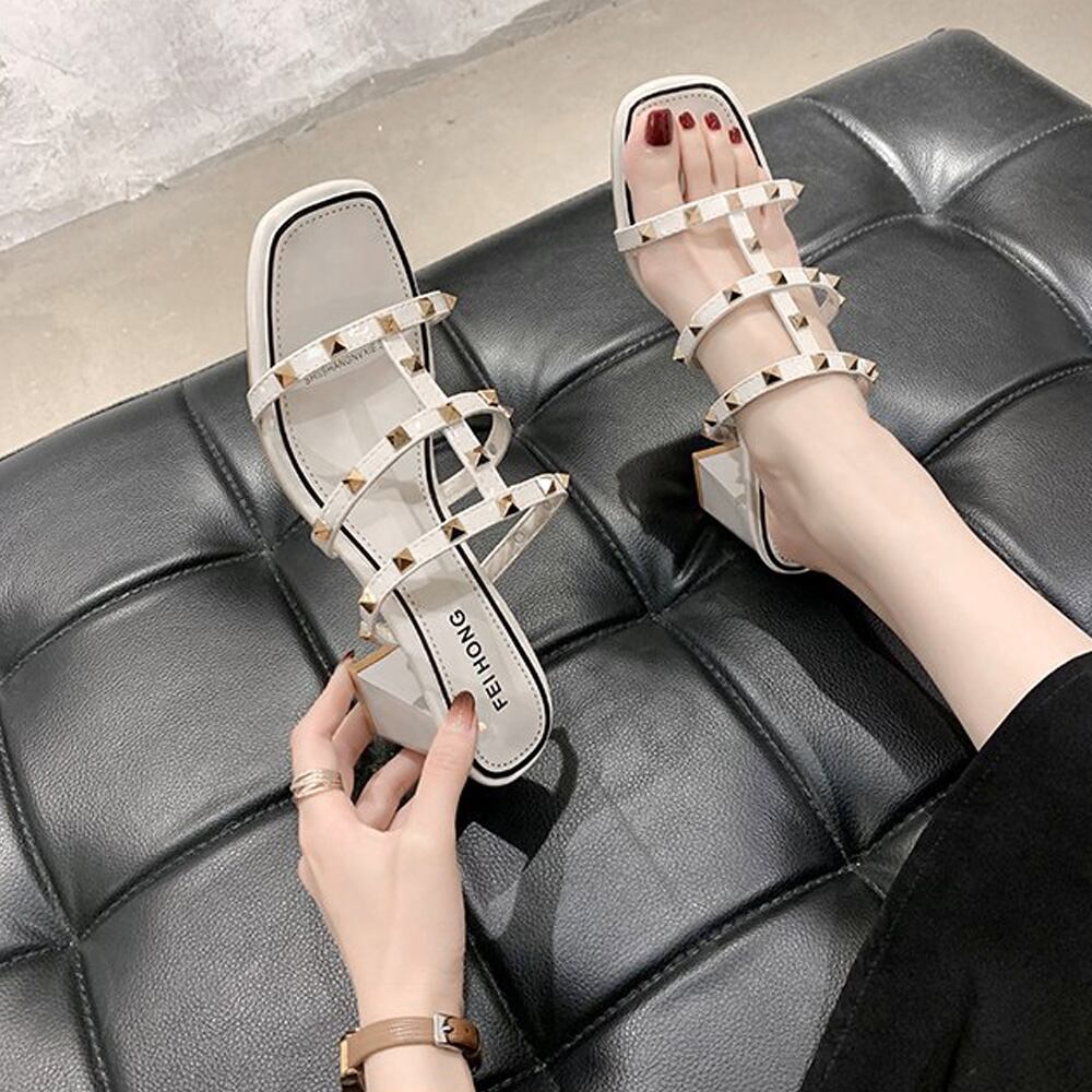 ミュールデザインで着脱楽々のレディライクなスタッズ付きサマーサンダル