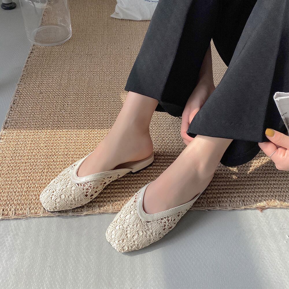 ローヒールサンダル 刺しゅうパンプス ミュール