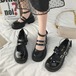 レディース エナメル ドレスシューズ 痛くない ストラップ 靴 太ヒール 厚底ローファー 美脚 歩きやすい コスプレ衣装