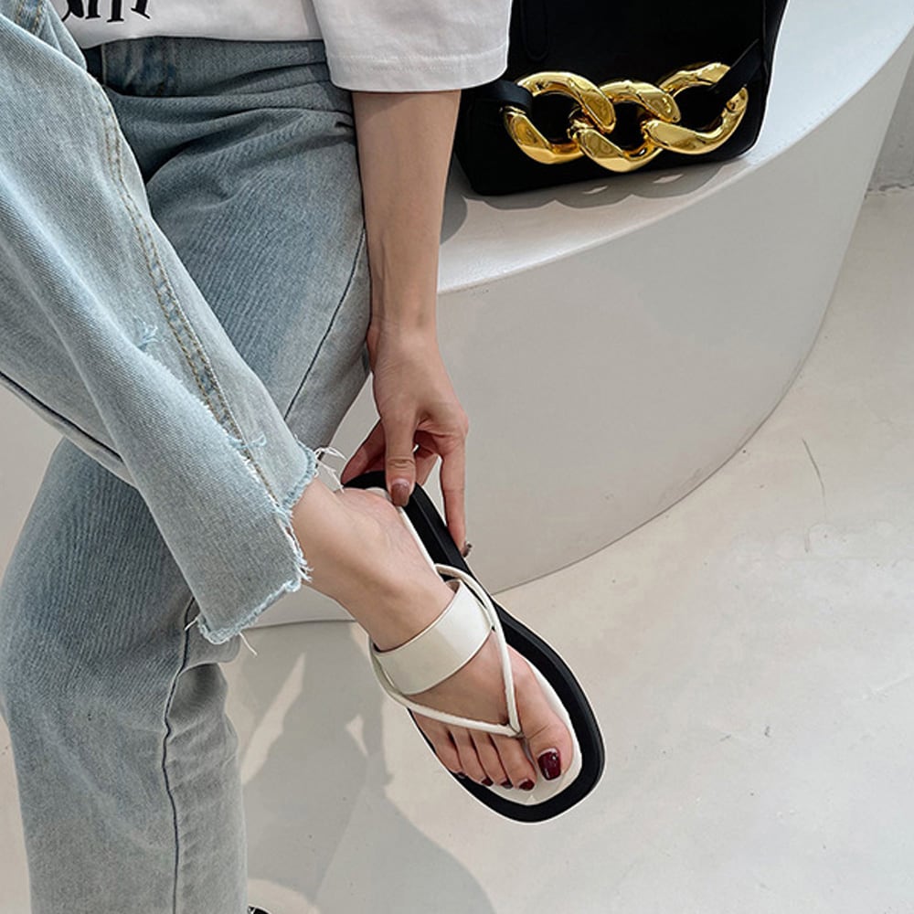 幅広いコーデにもマッチし、トレンド感も抑えられる万能トングサンダル