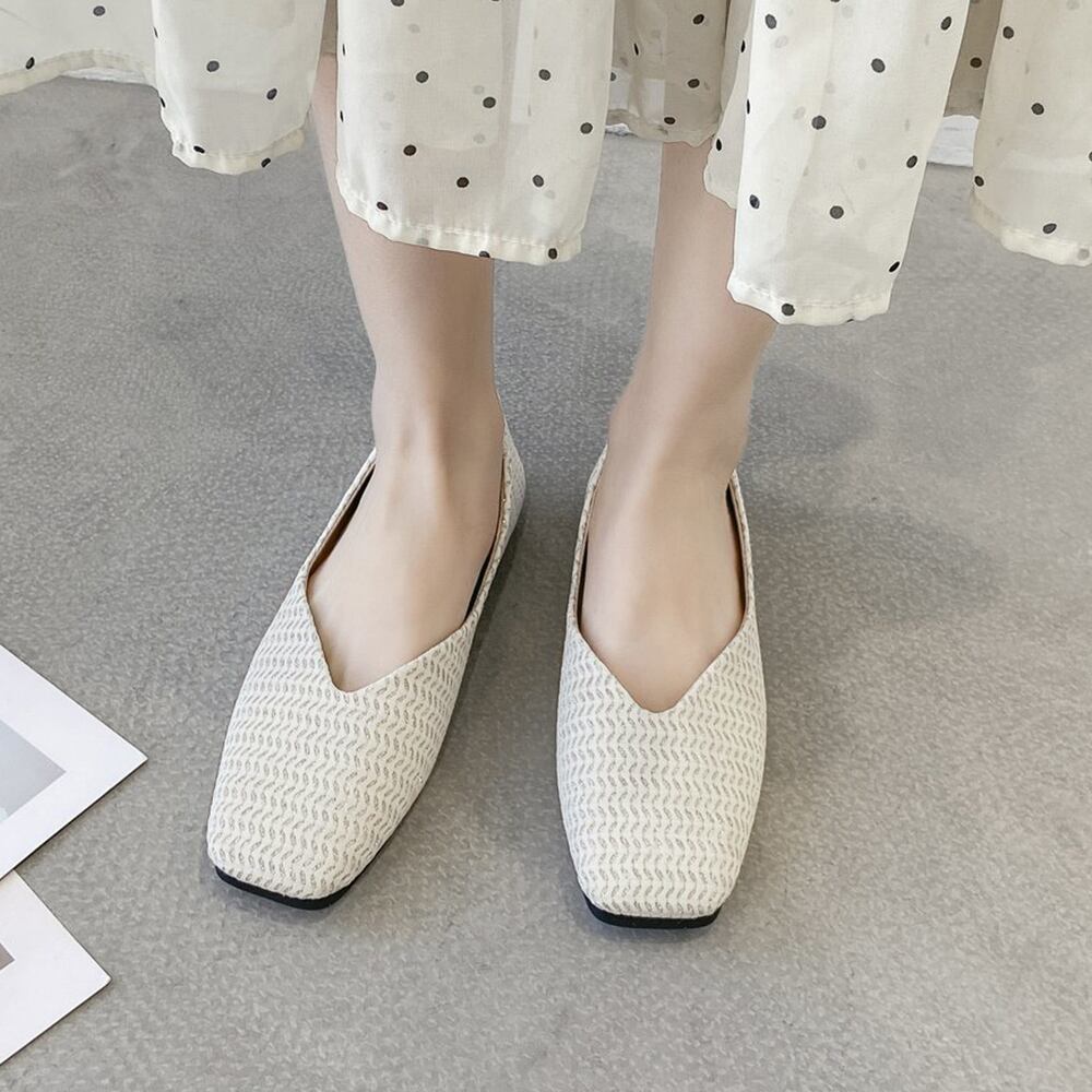 スクエアトゥ 痛くない バブーシュ プレーン 柔らかい メッシュ 通気性 カジュアル フラットパンプス シンプル 歩きやすい