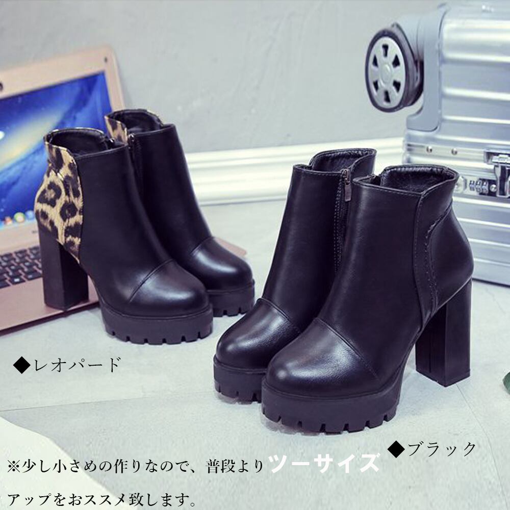 【日本倉庫即納】 厚底 チャンキーヒール ショートブーツ レディース 歩きやすい