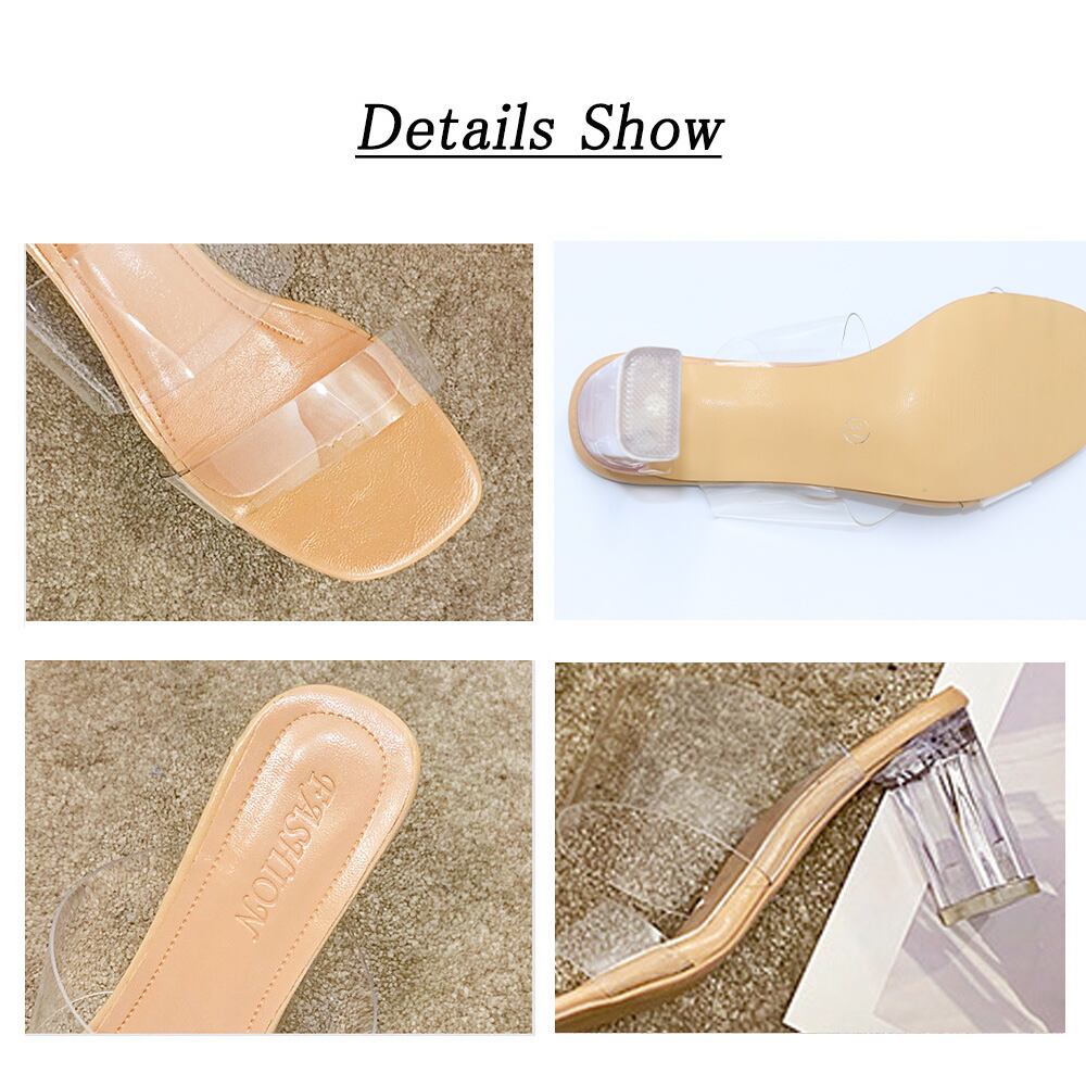 クリアチューブの甲ベルトがポイントのクリアソール太ヒールサンダル