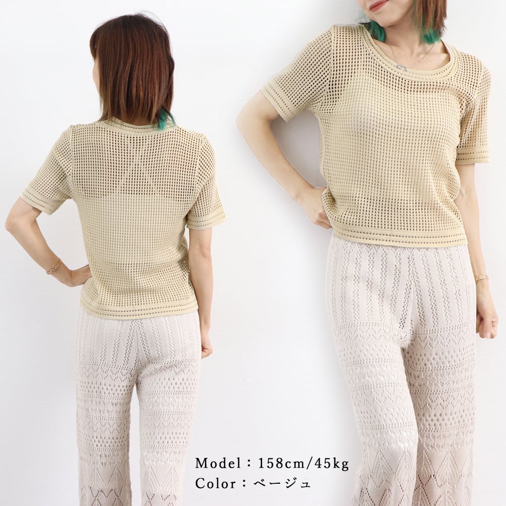【日本倉庫即納】 メッシュサマーニット レディース半袖夏服