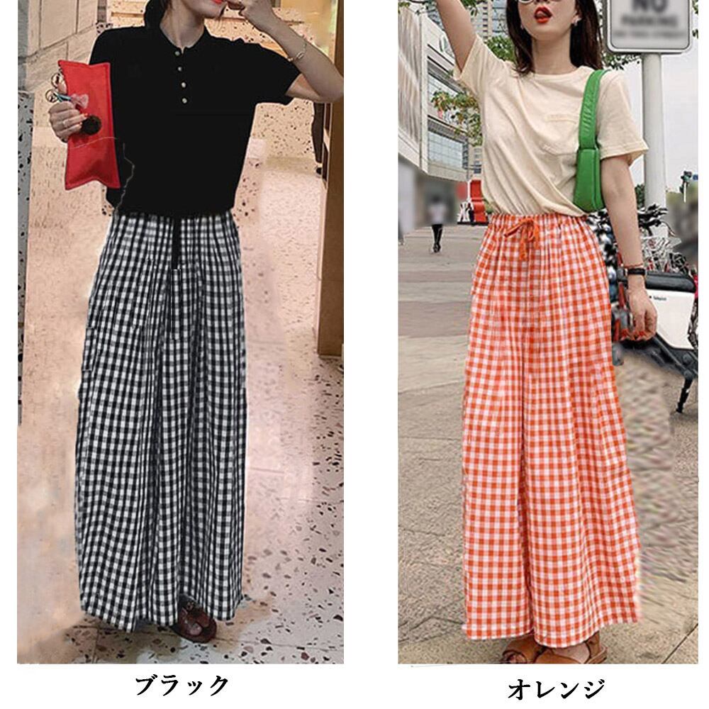 【日本倉庫即納】 ギンガムチェック ワイドパンツ