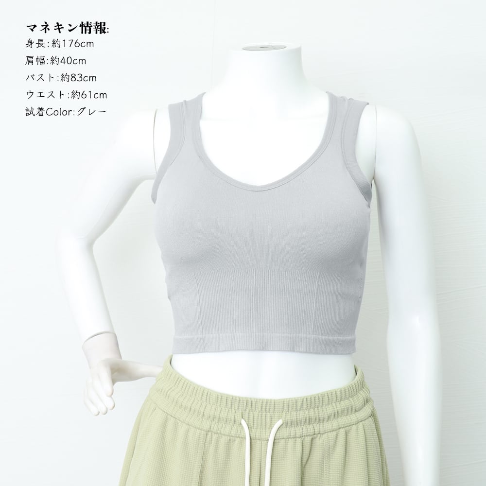 カジュアルな印象の素材を使用、着心地がよいカップ付きタンクトップです。