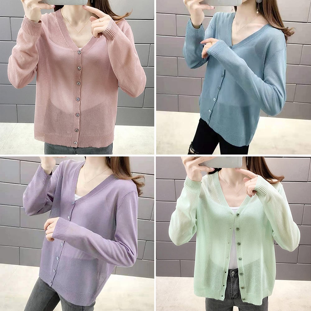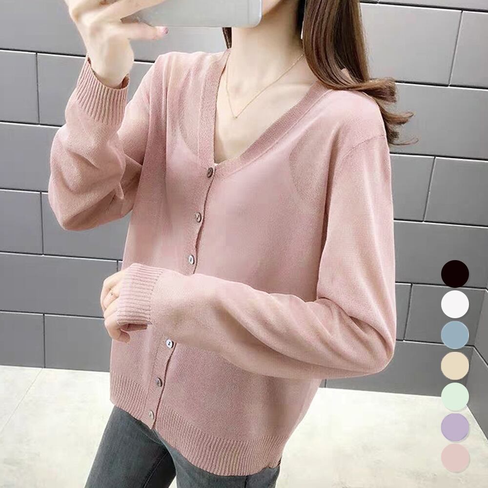 日焼け対策 薄手 ニットトップス 冷感タッチ オフィスカジュアル 羽織り 冷え対策 通学通勤 無地 vネックニット 長袖
