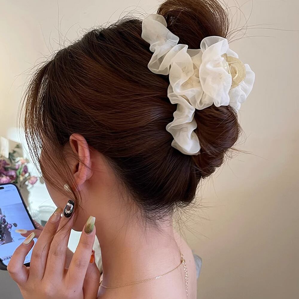 大人っぽさと可愛らしさを兼ね備えたフリルヘアクリップ