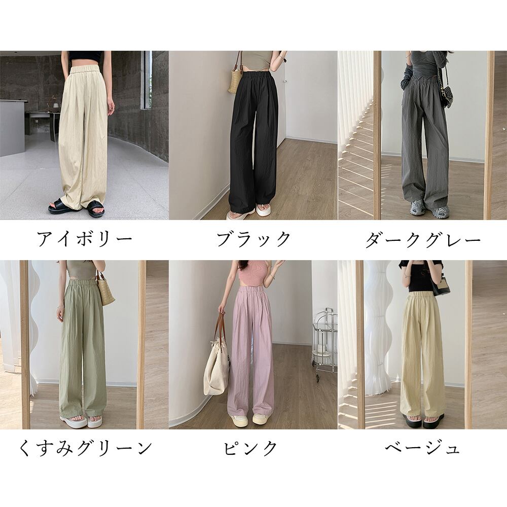 夏パンツ ロングパンツ イージーパンツ おしゃれ ワイドパンツ ウエストゴム 着やせ ハイウエスト ゆったり 着回し
