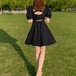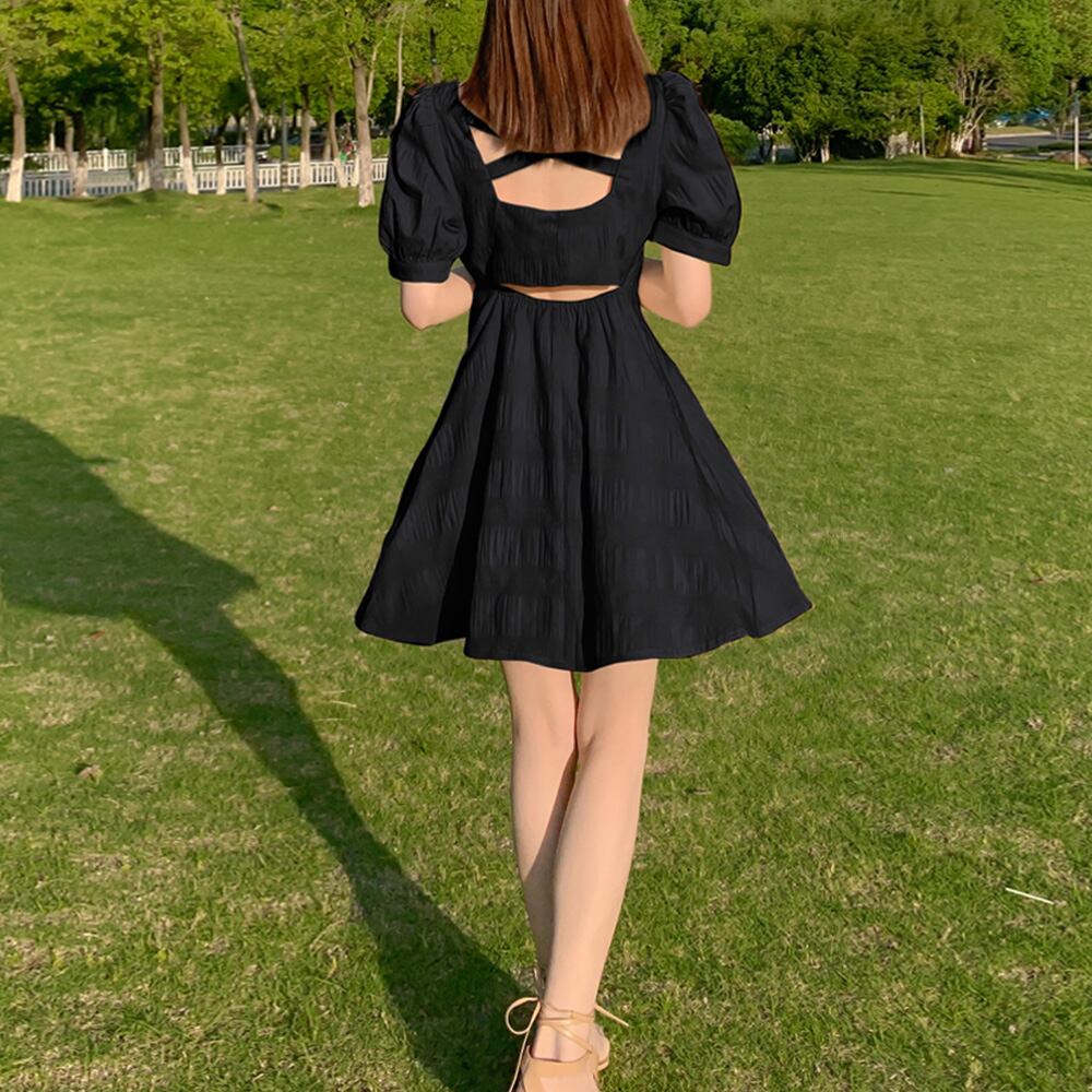 おしゃれ サマーワンピ パフスリーブ ロングワンピース バックシャン ミニワンピ 可愛い フレアワンピース バッククロス