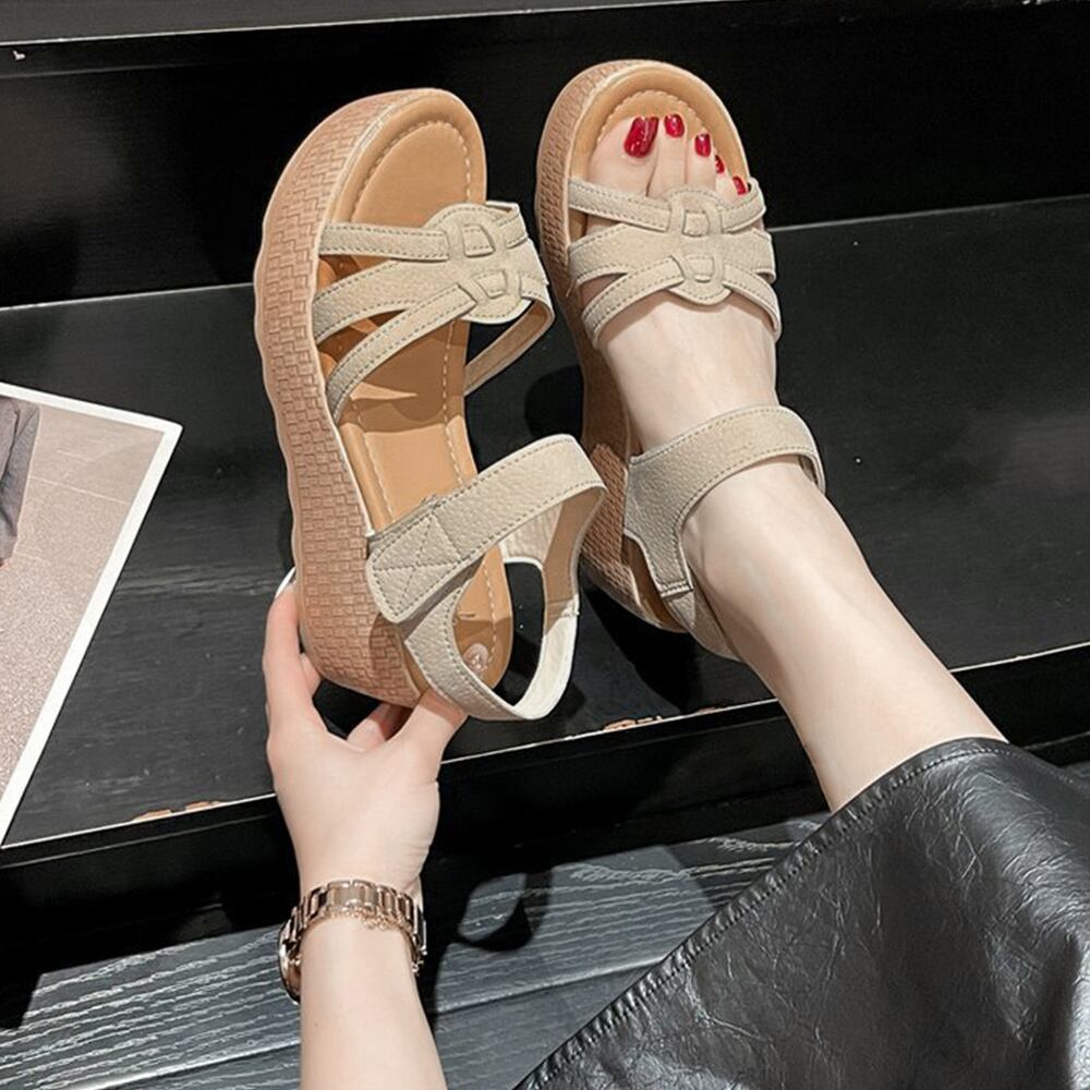 アンクルストラップ 厚底サンダル 脚長 ベルクロサンダル夏