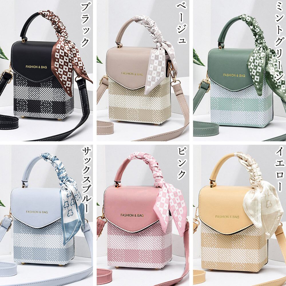 レディース チェック柄 PUレザー コンパクトバッグ 配色鞄 斜め掛け ミニバッグ おしゃれ 小さい 手提げバッグ 6色