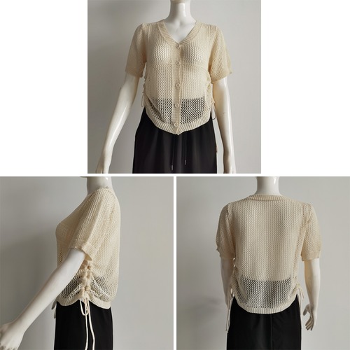 細糸で繊細に編み上げた清涼感のある透かし編みサマーニットカーディガン