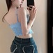 シャーリングキャミ 韓国風 トップス フレンチ 肌見せ